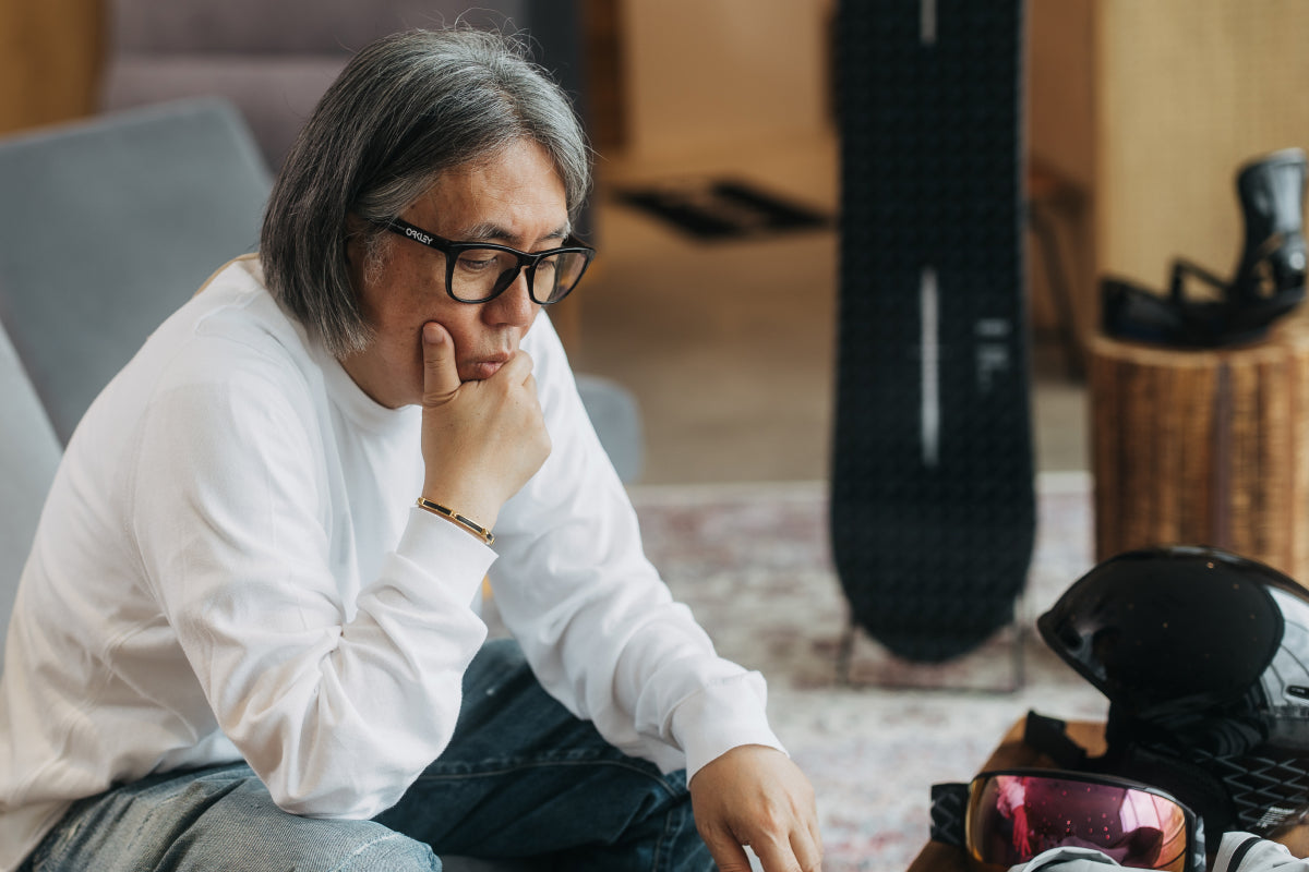 Something of a polymath, Fujiwara is now the force behind the creative studio and design agency Fragment Design – and Nike’s most important collaborator. The November drop of the 2025 Travis Scott x Fragment x Air Jordan 1 Low OG, a three-way collaboration, just broke records for the most legitimate raffle entries ever at 4.4 million. He is prolific, irrepressible, and as the buzz around his reverse swoosh sneakers reached hysteria, Fragment dropped another line last month: a snowboarding capsule collection for Burton. The sport is another Fujiwara fixation: he’s been involved in the lifestyle for nearly 30 years and regularly chases powder in Japan, designing gear for his own use and enjoyment which, as one might expect, transitions to streetwear.