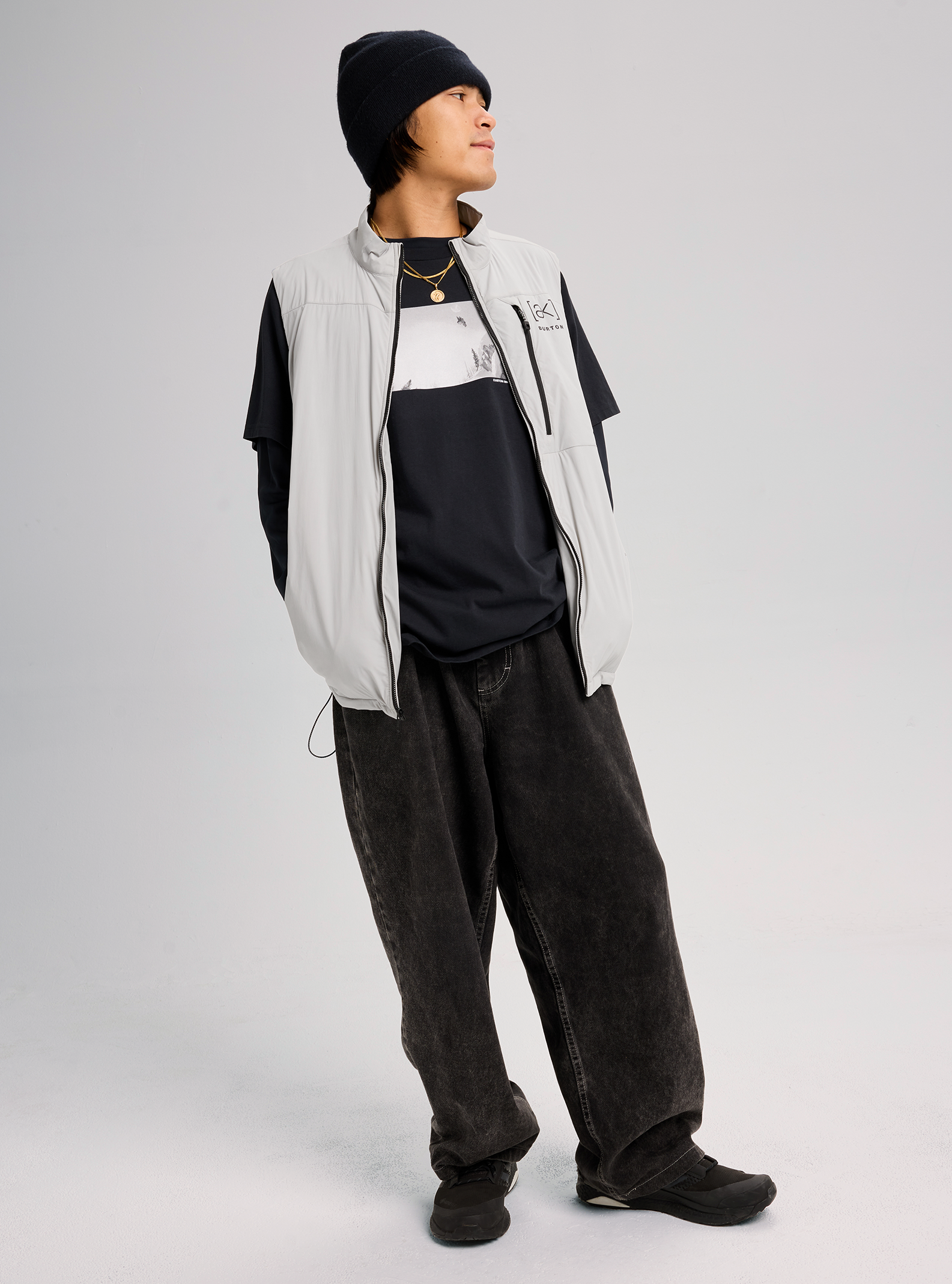 This latest capsule is a complete limited-edition set of both hardwear and outerwear: snowboards, bindings, jackets, bib pants, and Anon goggles and helmets, which are designed in technical materials such as Gore-Tex to withstand challenging conditions. Fujiwara is a long-time collaborator with Burton and has, over the years, conceived a number of collections for the snowboarding and outdoor products manufacturer, which also owns Anon Optics, the helmets and goggles innovator. His coveted drops embody his minimal streetwear aesthetic in monochromatic palettes (representative of Japan’s urban and alpine contrast) and sport subtle yet distinctive Fragment monograms: a repeating graphic of Fragment's iconic double-lightning bolt logo. It’s a symbol that is emblematic of Fujiwara’s dynamism and his ability to fuse global subcultures, bringing together music, fashion and design through collaboration.