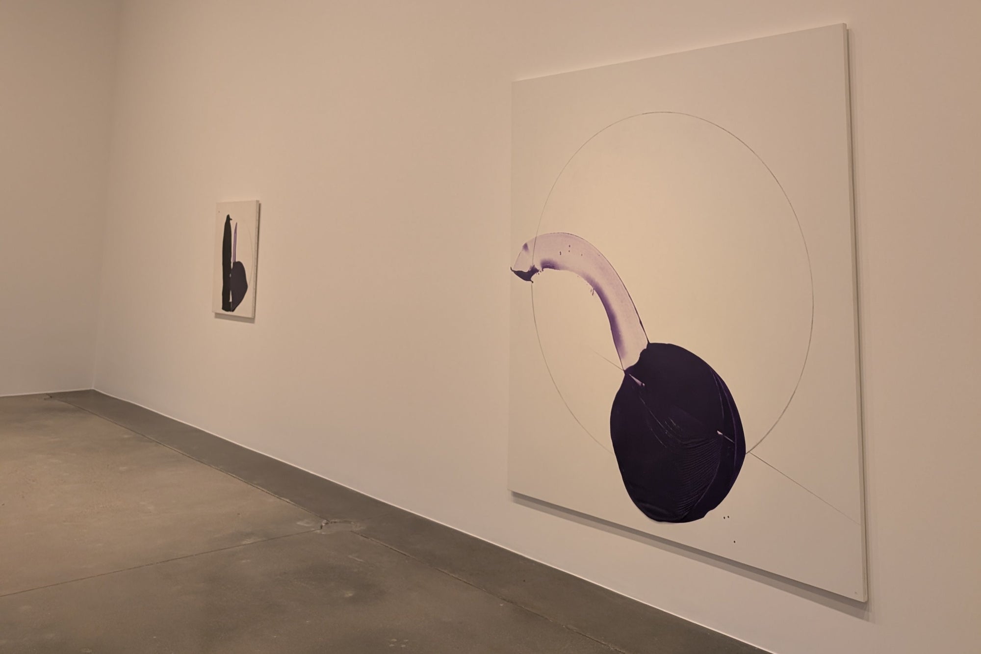 The work Abstrait is another piece that has evolved over time. “This was originally a performance piece at La Boverie in Liege, Belgium in 2024, where Matsutani created two circles on the canvas. He finished it up more recently in Paris by adding the purple.”