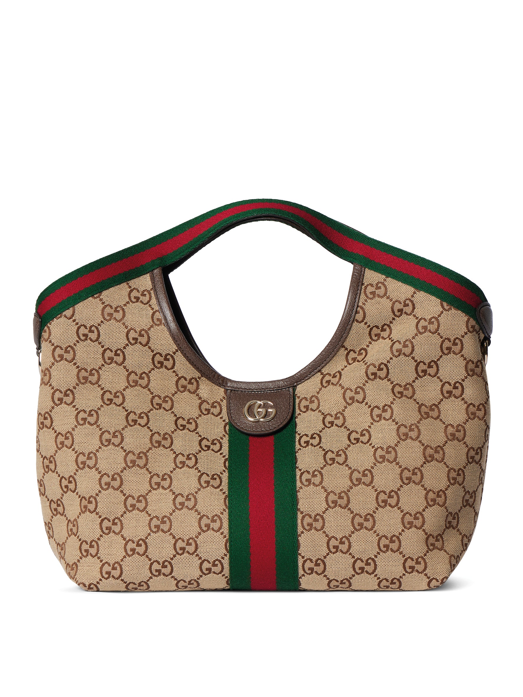 Photographed by Mert and Marcus with artistic direction by Demna, the images feature Moss with the Borsetto, a softly structured bowling-style bag featuring Horsebit hardware introduced as part of the house's SS26 collection in GG Canvas, brown suede and black leather. EmRata is photographed with the Giglio: the large, slouchy "carry-all" tote bag designed for the Cruise 2026 collection, first showcased in May 2025, which is presented in dark brown, black and a classic GG Canvas. The styling switches from minimal to full GG maximalism across garments and accessories. Dreamlike videos, directed by Bardia Zeinali, complement the campaign.